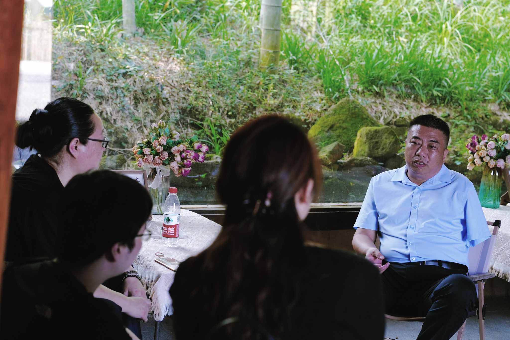 调研团队与伍鹏飞书记在云端小水进行座谈会,伍书记就个人发展、村庄治理、村庄产业发展等方面进行介绍,伍书记还详细讲述了他为什么回村做村支部书记以及在任期所经历的疑难问题和解决方法,并就小水村未来发展规划做了详细说明。